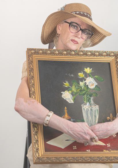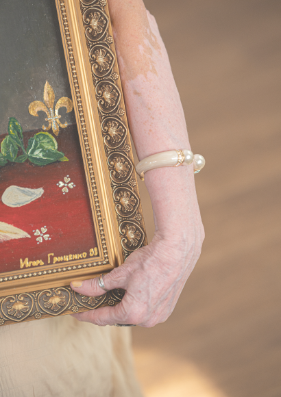 – обіймає його картини, торкається його дотику, цілує його посмішку, дихає його мріями, живе його душею.